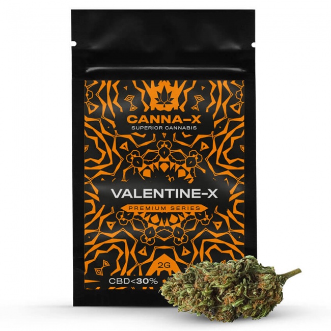 Canna-X Ανθοί Κάνναβης Valentine X Premium Series 30% CBD – 2γρ. Κορυφαίας Ιταλικής ποιότητας από βιολογική καλλιέργεια, χωρίς τη χρήση φαρμάκων ή εντομοκτόνων. Καλλιεργείται σε υψηλό υψόμετρο από μία από τις καλύτερες αν όχι την καλύτερη και παλαιότερη ομάδα καλλιεργητών της Ιταλίας.