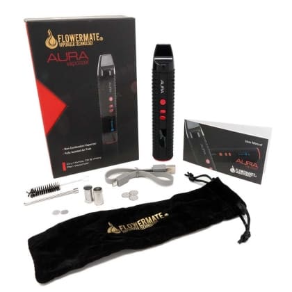 Flowermate AURA Vaporizer Ατμοποιητής. Η FlowerMate φημίζεται για την απίστευτη απόδοση των προϊόντων της σε ασυναγώνιστη τιμή και το Aura είναι ένα μοντέλο που επιβεβαιώνει τον ισχυρισμό αυτό. Πρόκειται για έναν ultra φορητό ατμοποιητή τύπου στυλό σχεδιασμένο τόσο για ξηρά βότανα όσο και για υγρά. Η ψηφιακή οθόνη αυξάνει την ακρίβεια και επιτρέπει στο χρήστη να συντονίζεται στην ακριβή απόδοση της θερμοκρασίας που επιθυμεί. Το Flowermate AURA παρέχει κορυφαία απόδοση και διαθέτει μπαταρία εξαιρετικής διάρκειας για το μέγεθός του, καθιστώντας το μία από τις ωραιότερες επιλογές της FlowerMate.