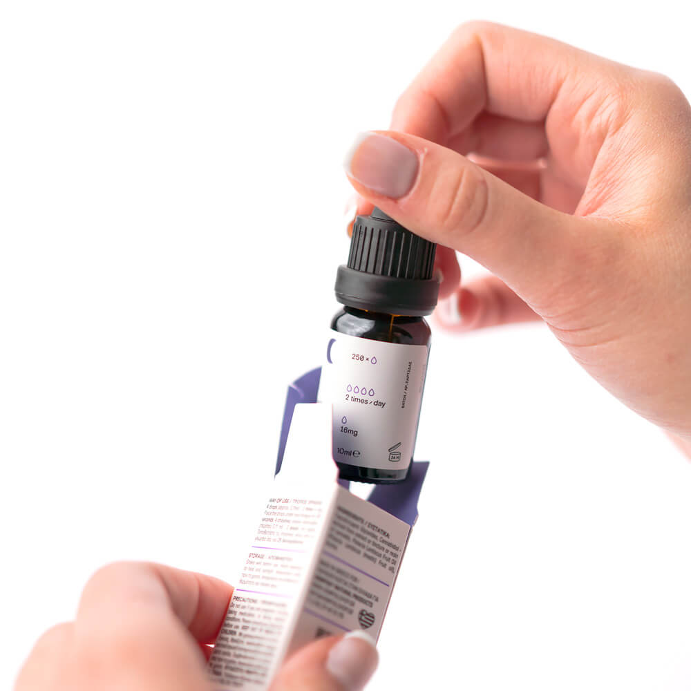 - 16mg ℮ CBD ανά σταγόνα (με το σταγονόμετρο στον περιέκτη)